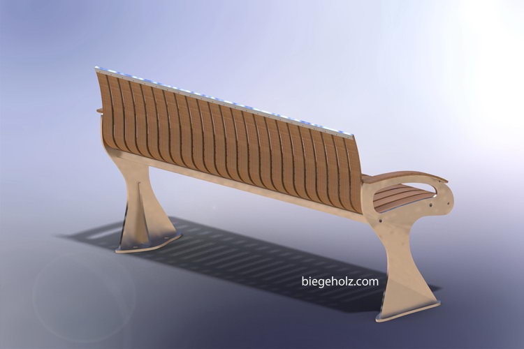 Aufgabenstellung: Parkbank, welche witterungsbeständig, nahezu pflegefrei (kein Abschleifen/nachstreichen), Seniorengerecht, modernes & urbanes DesignMaterial: gebeizter Edelstahl & KHPH in Buche