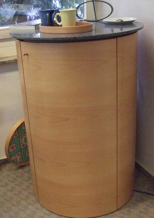 Das äußere und innere Deckfurnier läuft im Kreis (horizontal).Standard-Ausführung der Kreisprofile in MDF oder Buche.
